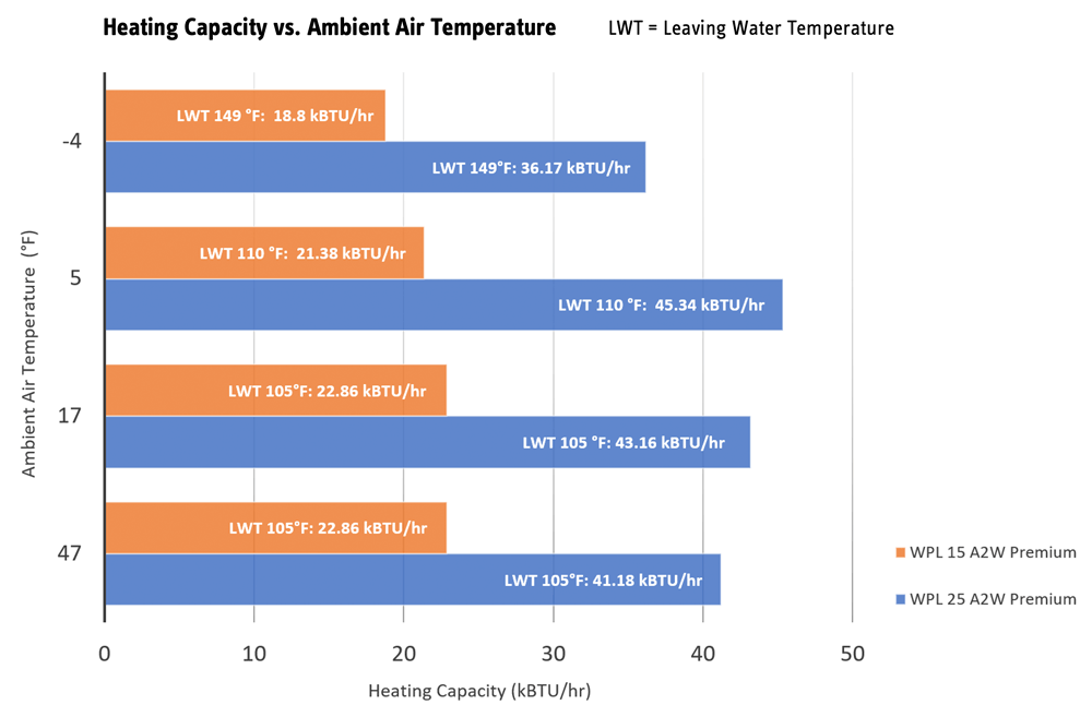 The WPL refrigerant circuit uses R410A and is hermetically sealed then rigorously tested for leaks at the factory. The WPL heat pump circuit is completely self-contained. Connection between the WPL and the HSBC is hydronic using a glycol solution. No HVAC technicians are required during installation. This greatly simplifies installation.